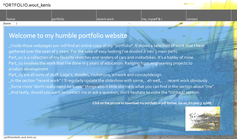 A website for my very first portfolio created waaay back when Flash websites still weren't evil. (only 2 years ago actually) If you're feeling nostalgic you can still find it here.