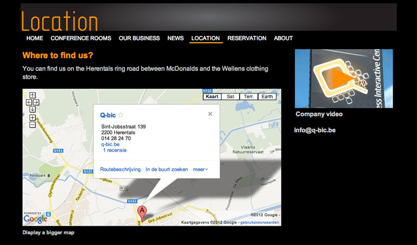 A website for the Conference and Business center Q-bic in Herentals. Complete with Drupal CMS. You can find them at www.q-bic.be.